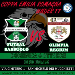 Il terzo appuntamento vede l’Under 17 di Mister Aguzzoli alla prima uscita ufficiale contro l’Olimpia Regium di Reggio Emilia nella partita valida per la prima giornata di Coppa Emilia Romagna riservata all’Under 17.