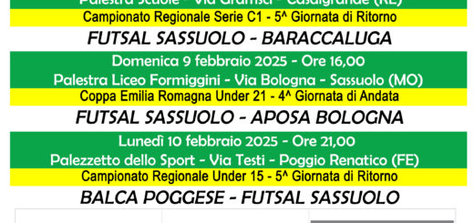 Under 15 | Balca Poggese 14 – 0 Futsal Sassuolo 12 Novembre 2025 Risultato amaro per la nostra Under 15 che, nonostante una buona prestazione, si arrende per 14-0 a Poggio Renatico. Prossimo appuntamento Lunedì 17 contro il Futsal Russi al Liceo Formiggini