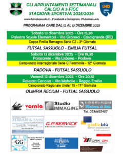 Venerdì sera invece è il turno dell’Under 15 che apre il weekend di appuntamenti neroverdi con la sfida all’Olimpia Regium, alle 20,10 a Reggio Emilia.