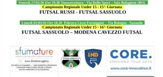 Ricomincia l’under 19 con il primo appuntamento dell’anno nuovo che corrisponde alla prima giornata del girone di ritorno. Domenica 19 gennaio alle ore 10, i neroverdi affrontano la trasferta ferrarese contro i X Martiri, anche in questo caso il Futsal Sassuolo affronta la capolista del girone, infatti i bianco-azzurri sono in testa a punteggio pieno.