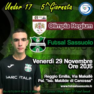 Weekend neroverde che parte di venerdì sera con l’Under 17 impegnata nella difficile trasferta di Reggio Emilia dove se la vedrà con l’Olimpia Regium. I padroni di casa arrivano al match in piena forma a punteggio pieno con 3 vittorie in altrettante partite. Il Futsal Sassuolo arriva all’incontro dopo la sconfitta per 2 a 0 contro il Bagnolo, capolista in campionato. Per i neroverdi seconda trasferta consecutiva mentre l’Olimpia Regium ha sconfitto fuori casa i X Martiri con il risultato di 5 a 8.