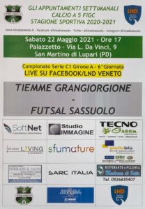 Due giornate al termine della regular season del campionato di Serie C1 e poi saranno playoff. Per la sesta giornata i neroverdi saranno impegnati nella delicata trasferta di San Martino di Lupari, nel padovano, contro il Tiemme Grangiorgione. Al momento i veneti occupano il secondo posto a quota 12 punti, il Futsal Sassuolo è subito sotto a due punti di differenza. Sarà quindi uno scontro importante ai fini della zona alta della classifica, un vero e proprio scontro diretto, seconda contro terza. Puoi seguire la partita in diretta Facebook sulla pagina LND Veneto