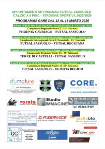 Sabato doppio appuntamento : alle 15 la prima squadra maschile giocherà al PalaA&B contro il Phoenix Cavriago, mentre alle 16:30 le ragazze di mister Giardina ospiteranno il Futsal Reggiana al Liceo Formiggini.