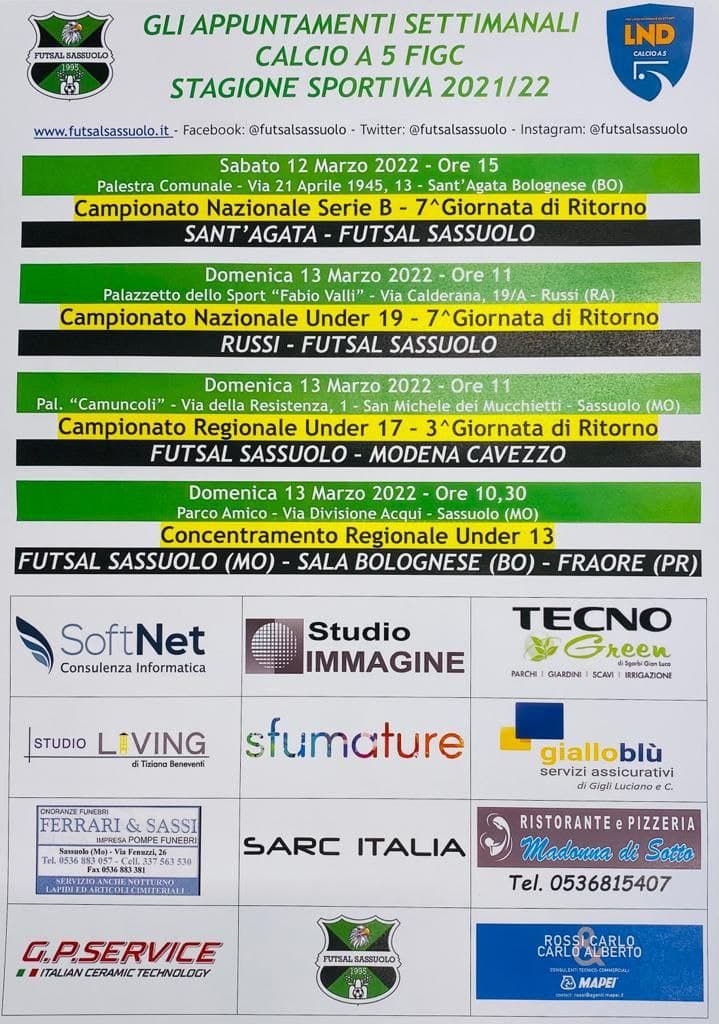 Appuntamenti settimanali [12-13 marzo 2022]